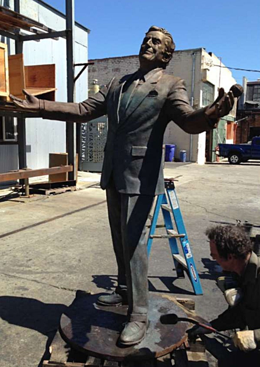 "One of the final and most important steps in the foundry process is the application of the patina. A good patina can make all the difference giving the final statue the final color that will define the permanent perception of the work. Karl Reichley is a masterful artist in his own right, providing just the right combination of chemicals on the Bennett statue to give it a distinct San Francisco feel. A darker color with hues of copper green, make the statue feel as if its been exposed to the sea air for decades and give it a common lineage to all the great statues throughout the City."